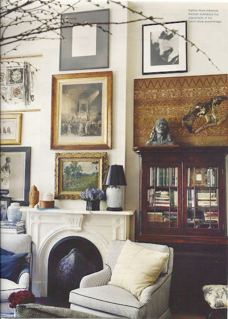 I love the collected paintings & objects and have an ever-evolving collection. It's light & airy yet a bit Alice-and-Wonderlandy. It's also got this amazing organic feel and it seems like it's free & open for change & creativity, which I need. Somewhere off of the living room, I'd love a little study - a bit darker than the other rooms- full of books and a pedestal table with some comfy wing chairs and a napping sofa. It would feel like this: